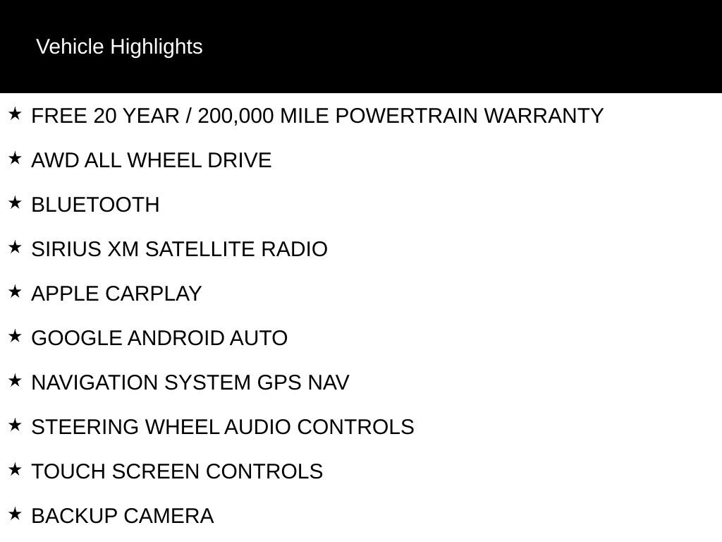 FREE 20 YEAR / 200,000 MILE POWERTRAIN WARRANTY, AWD ALL WHEEL DRIVE, BLUETOOTH, SIRIUS XM SATELLITE RADIO, APPLE CARPLAY, GOOGLE ANDROID AUTO, NAVIGATION SYSTEM GPS NAV, STEERING WHEEL AUDIO CONTROLS, TOUCH SCREEN CONTROLS, BACKUP CAMERA, KEYLESS PUSH BUTTON START, AUTOMATIC HEADLIGHTS, COLLISION AVOIDANCE SYSTEM, COLLISION WARNING ALERT SYSTEM, POWER DRIVER SEAT, POWER PASSENGER SEAT, HEATED/COOLED LEATHER SEATS, HEATED REAR LEATHER SEATS, PANORAMIC SUNROOF/MOONROOF, MEMORY PACKAGE / MEMORY SEAT, REMOTE START, POWER LIFTGATE, HEATED STEERING WHEEL, ACTIV SERIES, CONVENIENCE PACKAGE III, PREFERRED EQUIPMENT PACKAGE KDZ, SAFETY & TECHNOLOGY PACKAGE, 17" DARK ANDROID MACHINED-FACE ALUMINUM WHEELS, 6 SPEAKERS, AIR CONDITIONING, AUTOMATIC TEMPERATURE CONTROL, BRAKE ASSIST, DELAY-OFF HEADLIGHTS, DRIVER VANITY MIRROR, ELECTRONIC STABILITY CONTROL, EMERGENCY COMMUNICATION SYSTEM: ONSTAR AND CHEVROLET CONNECTED SERVICES CAPABLE, FRONT DUAL ZONE A/C, FRONT FOG LAMPS, LOW TIRE PRESSURE WARNING, OCCUPANT SENSING AIRBAG, OUTSIDE TEMPERATURE DISPLAY, OVERHEAD CONSOLE, PANIC ALARM, PASSENGER VANITY MIRROR, POWER DOOR MIRRORS, POWER WINDOWS, RAIN SENSING WIPERS, REAR WINDOW DEFROSTER, REAR WINDOW WIPER, REMOTE KEYLESS ENTRY, SPEED CONTROL, SPEED-SENSING STEERING, SPOILER, SUMMIT WHITE MIRROR CAPS, SUMMIT WHITE ROOF, TELESCOPING STEERING WHEEL, TILT STEERING WHEEL, TRAFFIC SIGN RECOGNITION, VARIABLY INTERMITTENT WIPERS.