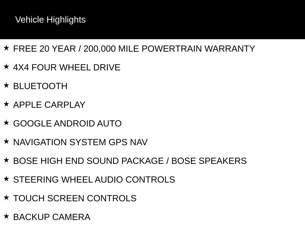 - FREE 20 YEAR / 200000 MILE POWERTRAIN WARRANTY