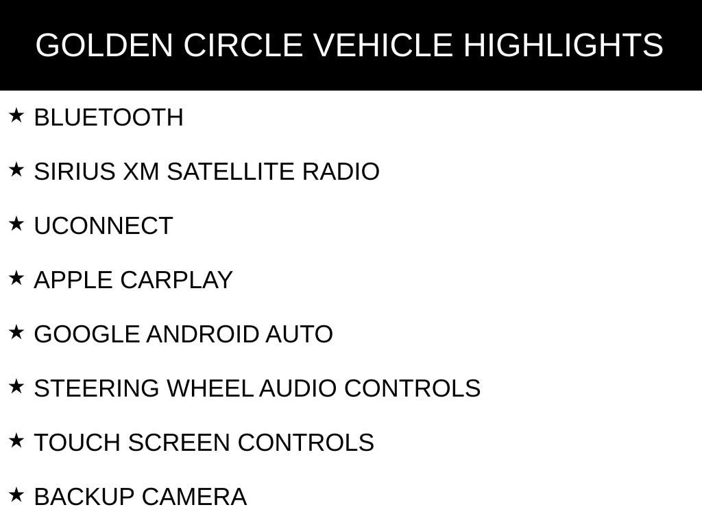 BLUETOOTH, SIRIUS XM SATELLITE RADIO, UCONNECT, APPLE CARPLAY, GOOGLE ANDROID AUTO, STEERING WHEEL AUDIO CONTROLS, TOUCH SCREEN CONTROLS, BACKUP CAMERA, KEYLESS PUSH BUTTON START, POWER DRIVER SEAT, SXT SERIES, QUICK ORDER PACKAGE 21A SXT, 18 CAST ALUMINUM WHEELS, 6 SPEAKERS, AIR CONDITIONING, ANTI-WHIPLASH FRONT HEAD RESTRAINTS, AUTO-DIMMING REAR-VIEW MIRROR, AUTOMATIC TEMPERATURE CONTROL, BRAKE ASSIST, COMPASS, DELAY-OFF HEADLIGHTS, DRIVER VANITY MIRROR, DUAL FRONT IMPACT AIRBAGS, DUAL FRONT SIDE IMPACT AIRBAGS, FOUR WHEEL INDEPENDENT SUSPENSION, FRONT DUAL ZONE A/C, HEATED DOOR MIRRORS, LEATHER SHIFT KNOB, LOW TIRE PRESSURE WARNING, OUTSIDE TEMPERATURE DISPLAY, OVERHEAD AIRBAG, OVERHEAD CONSOLE, PANIC ALARM, PARKVIEW REAR BACK-UP CAMERA, PASSENGER VANITY MIRROR, POWER DOOR MIRRORS, POWER WINDOWS, REAR WINDOW DEFROSTER, REMOTE KEYLESS ENTRY, SPEED CONTROL, SPEED-SENSING STEERING, SPOILER, TELESCOPING STEERING WHEEL, TILT STEERING WHEEL, VARIABLY INTERMITTENT WIPERS.