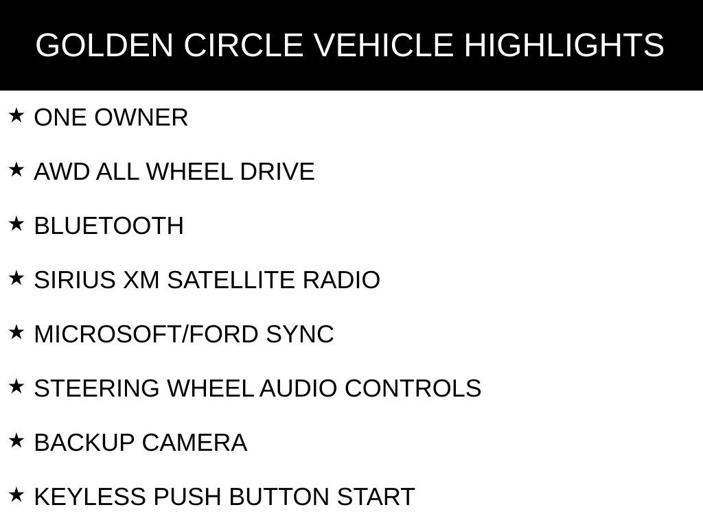 ONE OWNER, AWD ALL WHEEL DRIVE, BLUETOOTH, SIRIUS XM SATELLITE RADIO, MICROSOFT/FORD SYNC, STEERING WHEEL AUDIO CONTROLS, BACKUP CAMERA, KEYLESS PUSH BUTTON START, AUTOMATIC HEADLIGHTS, POWER DRIVER SEAT, SE SERIES, EQUIPMENT PACKAGE 200A, 17" SHADOW SILVER-PAINTED ALUMINUM WHEELS, 6 SPEAKERS, AIR CONDITIONING, AUTO HIGH-BEAM HEADLIGHTS, BRAKE ASSIST, COMPASS, DELAY-OFF HEADLIGHTS, DRIVER VANITY MIRROR, EMERGENCY COMMUNICATION SYSTEM: SYNC 3 911 ASSIST, FORDPASS CONNECT, FRONT BUCKET SEATS, FRONT CENTER ARMREST, LOW TIRE PRESSURE WARNING, OCCUPANT SENSING AIRBAG, OUTSIDE TEMPERATURE DISPLAY, OVERHEAD CONSOLE, PANIC ALARM, PASSENGER VANITY MIRROR, POWER DOOR MIRRORS, POWER WINDOWS, REAR WINDOW DEFROSTER, REAR WINDOW WIPER, REMOTE KEYLESS ENTRY, SPEED CONTROL, SPEED-SENSING STEERING, SPEED-SENSITIVE WIPERS, TELESCOPING STEERING WHEEL, TILT STEERING WHEEL, VARIABLY INTERMITTENT WIPERS.