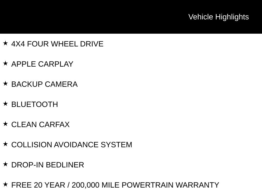 FREE 20 YEAR / 200,000 MILE POWERTRAIN WARRANTY, CLEAN CARFAX, 4X4 FOUR WHEEL DRIVE, BLUETOOTH, SIRIUS XM SATELLITE RADIO, MICROSOFT/FORD SYNC, APPLE CARPLAY, GOOGLE ANDROID AUTO, NAVIGATION SYSTEM GPS NAV, STEERING WHEEL AUDIO CONTROLS, BACKUP CAMERA, COLLISION AVOIDANCE SYSTEM, DROP-IN BEDLINER, TOW PACKAGE / TRAILER PACKAGE, INTEGRATED TRAILER BRAKE CONTROLLER, RUNNING BOARDS, XLT SERIES, EQUIPMENT PACKAGE 300A, 17" SILVER PAINTED ALUMINUM WHEELS, 3.55 AXLE RATIO, 6 SPEAKERS, ABS BRAKES, AIR CONDITIONING, BRAKE ASSIST, COMPASS, DELAY-OFF HEADLIGHTS, DRIVER VANITY MIRROR, ELECTRONIC STABILITY CONTROL, EMERGENCY COMMUNICATION SYSTEM: SYNC 4 911 ASSIST, FRONT CENTER ARMREST W/STORAGE, FRONT FOG LIGHTS, HEATED DOOR MIRRORS, ILLUMINATED ENTRY, LOW TIRE PRESSURE WARNING, OUTSIDE TEMPERATURE DISPLAY, OVERHEAD CONSOLE, PANIC ALARM, PASSENGER VANITY MIRROR, POWER DOOR MIRRORS, POWER WINDOWS, REAR STEP BUMPER, REAR WINDOW DEFROSTER, REMOTE KEYLESS ENTRY, SPEED CONTROL, SPLIT FOLDING REAR SEAT, TELESCOPING STEERING WHEEL, TILT STEERING WHEEL, TRACTION CONTROL, VARIABLY INTERMITTENT WIPERS.