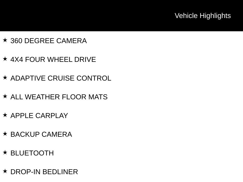 FREE 20 YEAR / 200,000 MILE POWERTRAIN WARRANTY, 4X4 FOUR WHEEL DRIVE, BLUETOOTH, SIRIUS XM SATELLITE RADIO, MICROSOFT/FORD SYNC, APPLE CARPLAY, GOOGLE ANDROID AUTO, NAVIGATION SYSTEM GPS NAV, STEERING WHEEL AUDIO CONTROLS, TOUCH SCREEN CONTROLS, BACKUP CAMERA, KEYLESS PUSH BUTTON START, 360 DEGREE CAMERA, ADAPTIVE CRUISE CONTROL, POWER DRIVER SEAT, HEATED FRONT CLOTH SEATS, DROP-IN BEDLINER, TOW PACKAGE / TRAILER PACKAGE, INTEGRATED TRAILER BRAKE CONTROLLER, RUNNING BOARDS, ALL WEATHER FLOOR MATS, XLT SERIES, EQUIPMENT PACKAGE 302A, FORD CO-OPILOT 360 ASSIST 2.0, TRAILER TOW PACKAGE, XLT CHROME APPEARANCE PACKAGE, 18" CHROME LIKE PVD WHEELS, 6 Speakers, Air Conditioning, Auto-Dimming Rear-View Mirror, Brake assist, Chrome Door & Tailgate Handles w/Body-Color Bezel, Chrome Single-Tip Exhaust, Class IV Trailer Hitch Receiver, Compass, Delay-off headlights, Driver vanity mirror, Dual front impact airbags, Dual front side impact airbags, Electronic Locking w/3.73 Axle Ratio, Electronic Stability Control, Emergency communication system: SYNC 4 911 Assist, Evasive Steering Assist, Front fog lights, Low tire pressure warning, Occupant sensing airbag, Outside temperature display, Overhead console, Panic alarm, Passenger vanity mirror, Power Glass Heated Sideview Mirrors, Power windows, Power-Sliding Rear Window, Rear step bumper, Rear Under-Seat Storage, Rear window defroster, Remote keyless entry, Speed Sign Recognition, Speed-sensing steering, Split folding rear seat, Telescoping steering wheel, Tilt steering wheel, Traction control, Variably intermittent wipers.