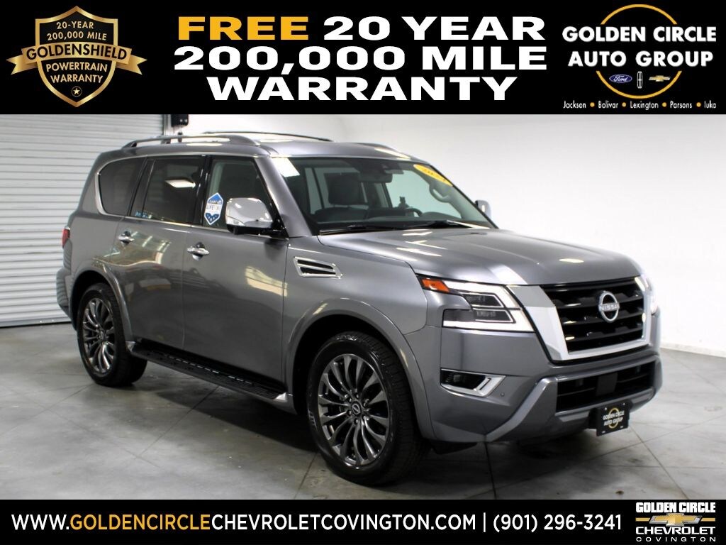 FREE 20 YEAR / 200,000 MILE POWERTRAIN WARRANTY, ONE OWNER, CLEAN CARFAX, BLUETOOTH, SIRIUS XM SATELLITE RADIO, NAVIGATION SYSTEM GPS NAV, STEERING WHEEL AUDIO CONTROLS, TOUCH SCREEN CONTROLS, BACKUP CAMERA, HOMELINK UNIVERSAL GARAGE DOOR OPENER, WIRELESS CHARGING, WI-FI HOTSPOT, KEYLESS PUSH BUTTON START, AUTOMATIC HEADLIGHTS, COLLISION AVOIDANCE SYSTEM, COLLISION WARNING ALERT SYSTEM, POWER DRIVER SEAT, POWER PASSENGER SEAT, HEATED/COOLED LEATHER SEATS, 2ND ROW BUCKETS, 3RD ROW SEAT, SUNROOF/MOONROOF, MEMORY PACKAGE / MEMORY SEAT, REMOTE START, POWER LIFTGATE, HEATED STEERING WHEEL, TOW PACKAGE / TRAILER PACKAGE, INTEGRATED TRAILER BRAKE CONTROLLER, RUNNING BOARDS, PLATINUM SERIES, CAPTAIN'S CHAIRS PACKAGE, CARGO PACKAGE, 22" MACHINED-FACE W/ TINTED CLEAR COAT WHEELS, 13 SPEAKERS, ANTI-WHIPLASH FRONT HEAD RESTRAINTS, AUTO TILT-AWAY STEERING WHEEL, AUTO-DIMMING REAR-VIEW MIRROR, AUTO-LEVELING SUSPENSION, AUTOMATIC TEMPERATURE CONTROL, BRAKE ASSIST, DELAY-OFF HEADLIGHTS, EMERGENCY COMMUNICATION SYSTEM: NISSANCONNECT SERVICES, FOUR WHEEL INDEPENDENT SUSPENSION, FRONT DUAL ZONE A/C, FRONT FOG LIGHTS, HEATED DOOR MIRRORS, HVAC MEMORY, ILLUMINATED KICK PLATES, LEATHER SHIFT KNOB, LEATHER STEERING WHEEL, LOW TIRE PRESSURE WARNING, OCCUPANT SENSING AIRBAG, OUTSIDE TEMPERATURE DISPLAY, OVERHEAD CONSOLE, PANIC ALARM, PASSENGER DOOR BIN, PASSENGER VANITY MIRROR, POWER DOOR MIRRORS, POWER WINDOWS, QUILTED LEATHER SEAT TRIM, RAIN SENSING WIPERS, REAR AIR CONDITIONING, REAR WINDOW DEFROSTER, REAR WINDOW WIPER, RECLINING 3RD ROW SEAT, REMOTE KEYLESS ENTRY, ROOF RAIL CROSS BARS - GUN METAL, SPEED CONTROL, SPEED-SENSING STEERING, SPEED-SENSITIVE WIPERS, STEERING WHEEL MEMORY, TELESCOPING STEERING WHEEL, TILT STEERING WHEEL, TURN SIGNAL INDICATOR MIRRORS.