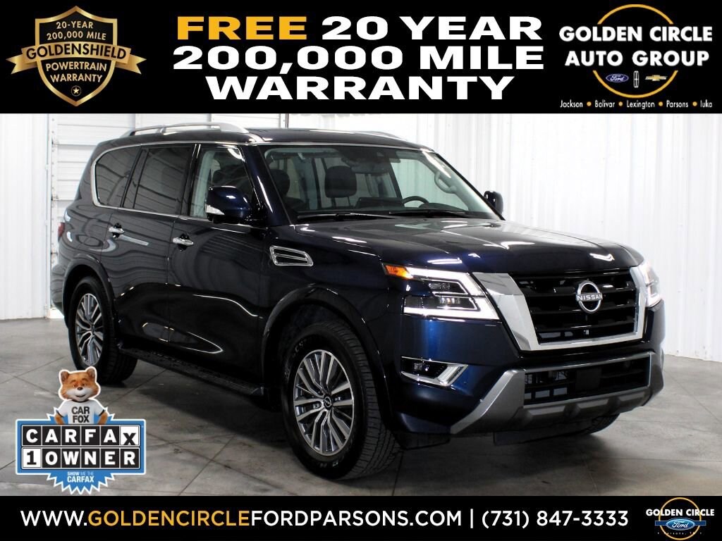 FREE 20 YEAR / 200,000 MILE POWERTRAIN WARRANTY, ONE OWNER, CLEAN CARFAX, BLUETOOTH, SIRIUS XM SATELLITE RADIO, APPLE CARPLAY, GOOGLE ANDROID AUTO, NAVIGATION SYSTEM GPS NAV, STEERING WHEEL AUDIO CONTROLS, TOUCH SCREEN CONTROLS, BACKUP CAMERA, HOMELINK UNIVERSAL GARAGE DOOR OPENER, WIRELESS CHARGING, WI-FI HOTSPOT, KEYLESS PUSH BUTTON START, AUTOMATIC HEADLIGHTS, POWER DRIVER SEAT, POWER PASSENGER SEAT, HEATED FRONT LEATHER SEATS, 3RD ROW SEAT, SUNROOF/MOONROOF, MEMORY PACKAGE / MEMORY SEAT, REMOTE START, POWER LIFTGATE, HEATED STEERING WHEEL, TOW PACKAGE / TRAILER PACKAGE, INTEGRATED TRAILER BRAKE CONTROLLER, RUNNING BOARDS, 13 SPEAKERS, AIR CONDITIONING, ANTI-WHIPLASH FRONT HEAD RESTRAINTS, AUTO TILT-AWAY STEERING WHEEL, AUTO-LEVELING SUSPENSION, AUTOMATIC TEMPERATURE CONTROL, BRAKE ASSIST, DASH CAM - DUAL CAMERA DRIVE RECORDER, DELAY-OFF HEADLIGHTS, DRIVER VANITY MIRROR, EMERGENCY COMMUNICATION SYSTEM: NISSANCONNECT SERVICES, FOUR WHEEL INDEPENDENT SUSPENSION, FRONT DUAL ZONE A/C, FRONT FOG LIGHTS, HEATED DOOR MIRRORS, HVAC MEMORY, LEATHER SHIFT KNOB, LEATHER STEERING WHEEL, LOW TIRE PRESSURE WARNING, OCCUPANT SENSING AIRBAG, OUTSIDE TEMPERATURE DISPLAY, OVERHEAD CONSOLE, PASSENGER VANITY MIRROR, POWER DOOR MIRRORS, POWER WINDOWS, REAR AIR CONDITIONING, REAR WINDOW DEFROSTER, REAR WINDOW WIPER, RECLINING 3RD ROW SEAT, REMOTE KEYLESS ENTRY, SPEED CONTROL, SPEED-SENSING STEERING, SPEED-SENSITIVE WIPERS, STEERING WHEEL MEMORY, TELESCOPING STEERING WHEEL, TILT STEERING WHEEL, VARIABLY INTERMITTENT WIPERS.